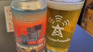 Cellarmaker Sound & FuryウエストコーストIPA。ホップは、ネクタロン、カスケード、モザイクを使用。ライムが、やや強く。白ブドウ、ライチ、グレープフルーツなどの風味。トロピカルフルーツ、ベリーも。草っ...